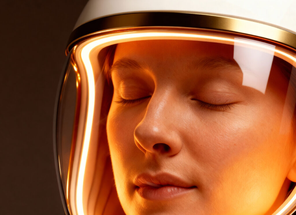 Design-forward facial mask that combines AI-tuned O₂ enrichment, light therapy, and aroma diffusion for modern beauty and aesthetic treatments.